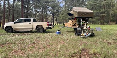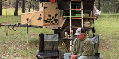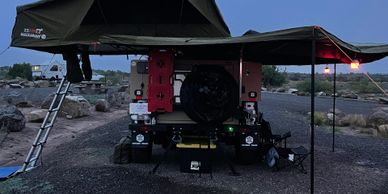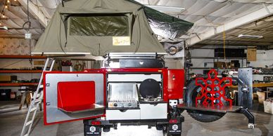 This particular trailer is very adaptable to whatever adventure you are choosing. We can add additional fuel canisters, fresh water canisters, popup bathroom and portable toilet, tent annex for additional sleeping or lounging space, and many outdoor game setups for family fun.